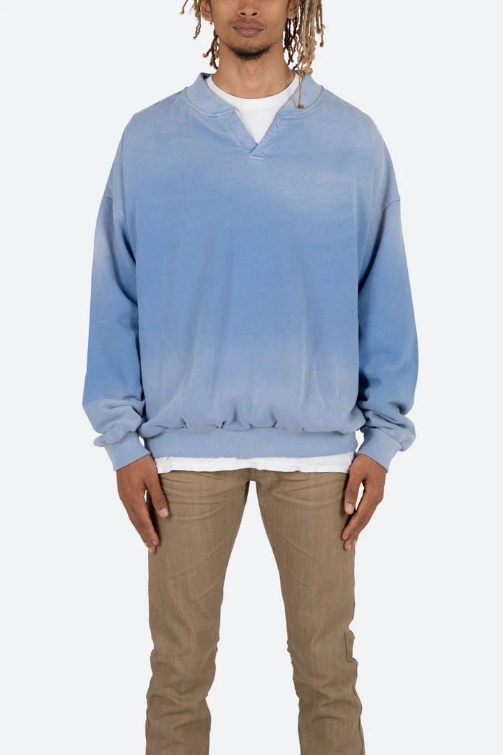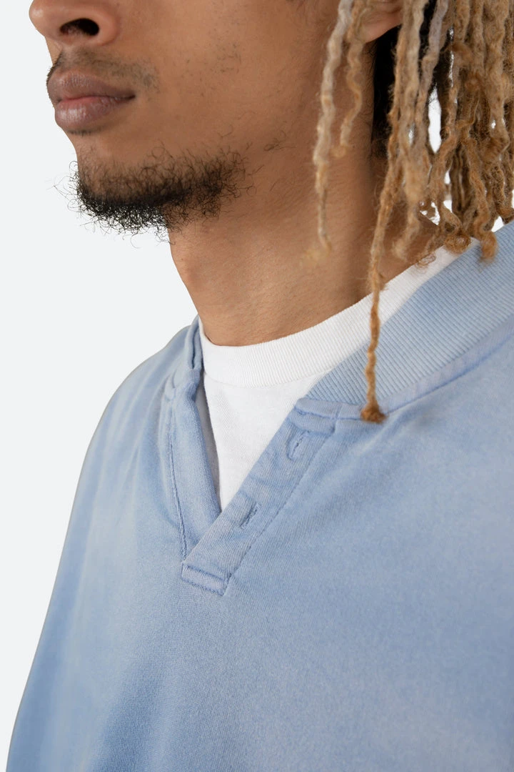 - Elevate your casual wardrobe with the Mnml Vintage Henley Crewneck in Light Blue. This stylish sweatshirt combines comfort and fashion, making it perfect for everyday wear.