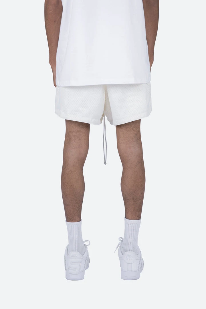 - Stay cool and comfortable with the Mnml Warm Up Mesh Shorts in Off White. Designed for athletes and casual wearers alike, these shorts feature a lightweight mesh fabric that ensures breathability and flexibility during any activity.