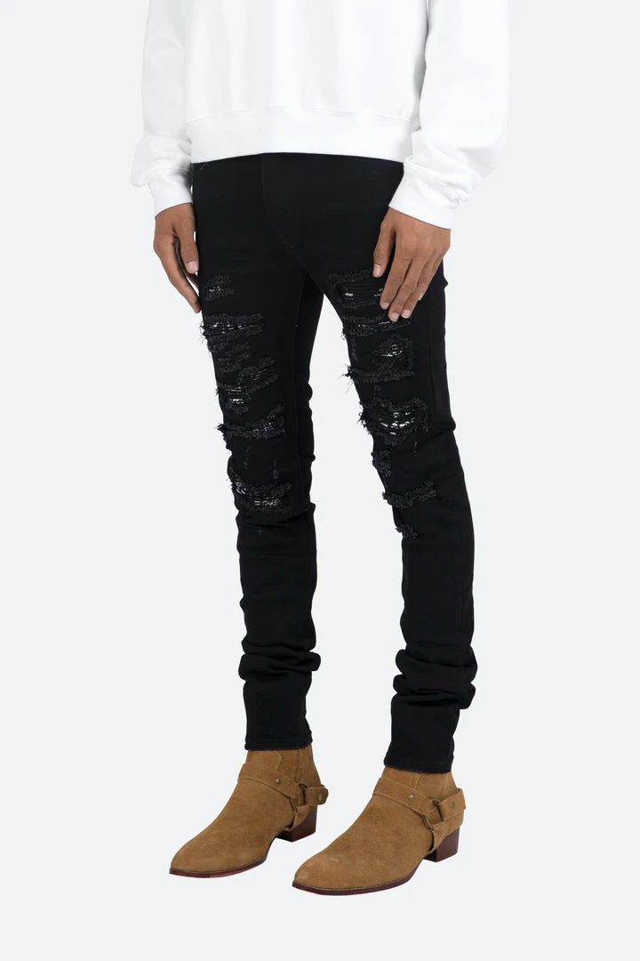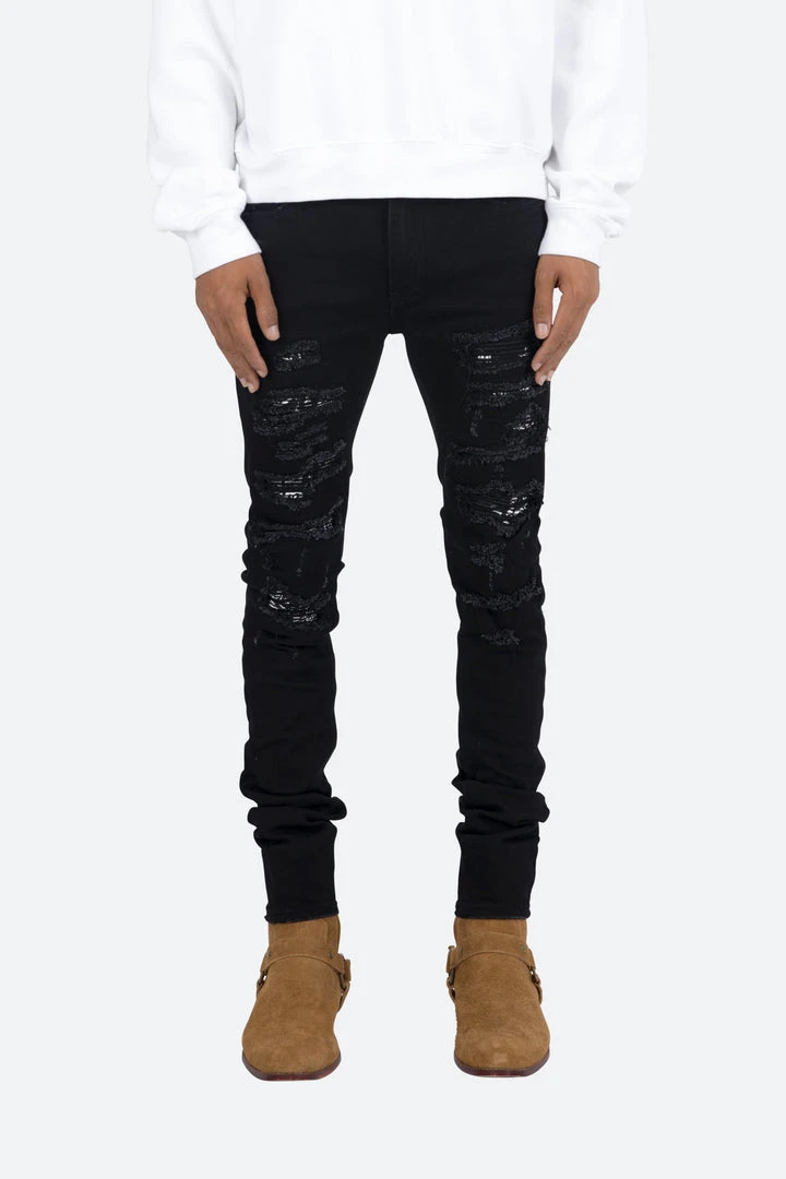 - Elevate your style with the Mnml X165 Paisley Skinny Denim in Black/Black. Designed for a sleek, modern look, these jeans are perfect for any casual or semi-formal occasion.