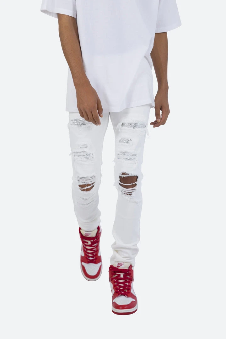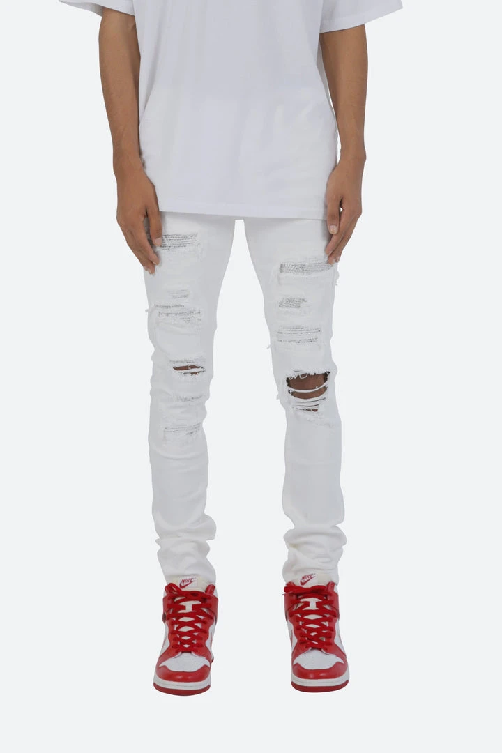 - Elevate your style with the Mnml X201 Rhinestone Skinny Denim in White. Designed with a slim X Skinny fit, these jeans offer a modern and sleek silhouette.