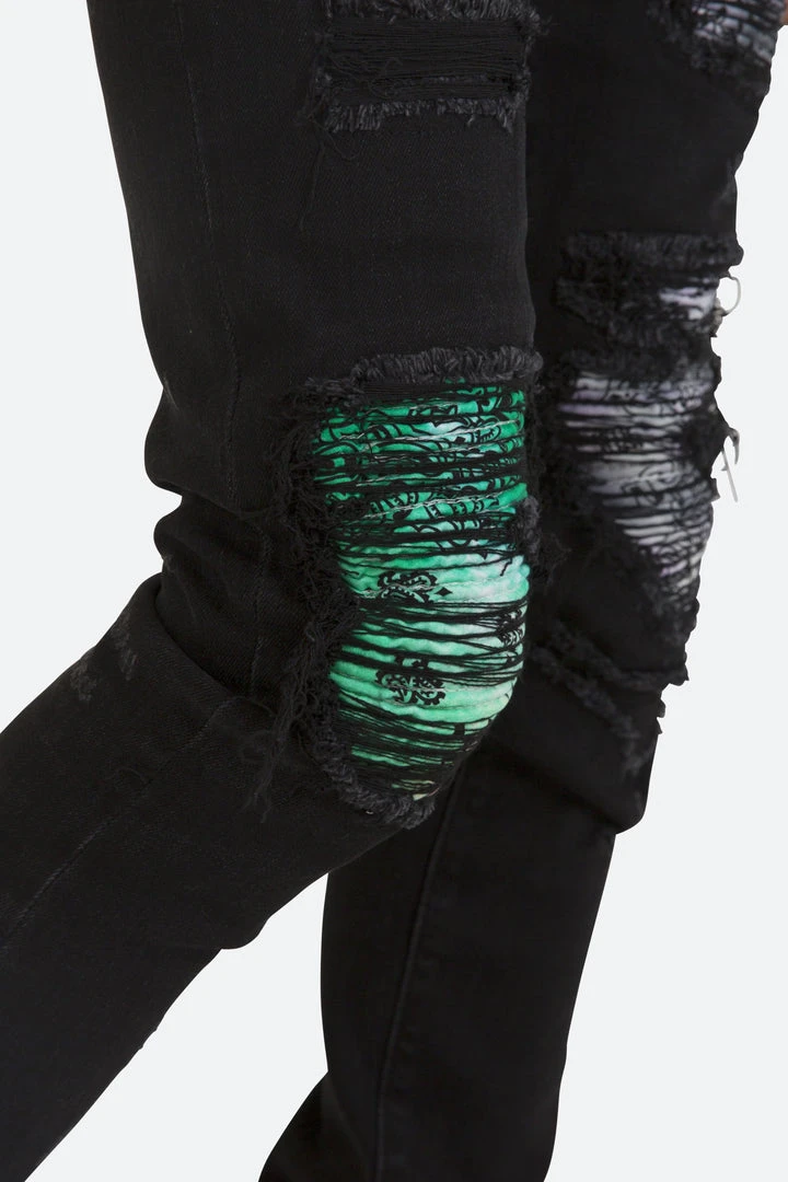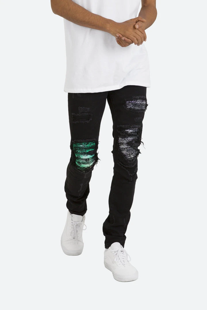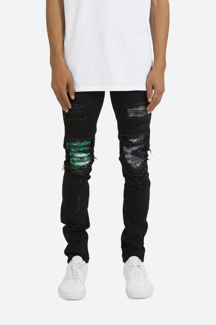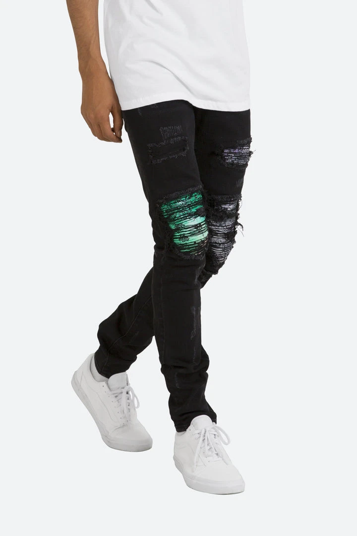 - Elevate your style with the Mnml X284 Moto Skinny Denim in Black/Purple. Designed for a sleek, modern look, these jeans feature a unique moto detailing that sets them apart.