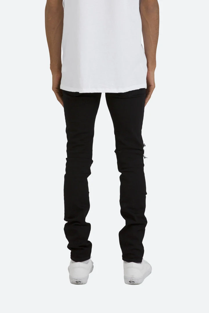 - Elevate your style with the Mnml X285 Moto Skinny Denim in Black/Red. Designed for a sleek, modern look, these jeans feature a unique moto-inspired design and a comfortable X Skinny fit.