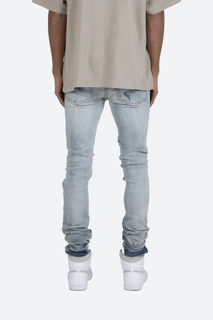 - Elevate your style with the Mnml X408 Repaired Skinny Denim Jeans in Blue. Designed for a sleek, modern look, these jeans feature a slim fit and distressed details for an edgy vibe.