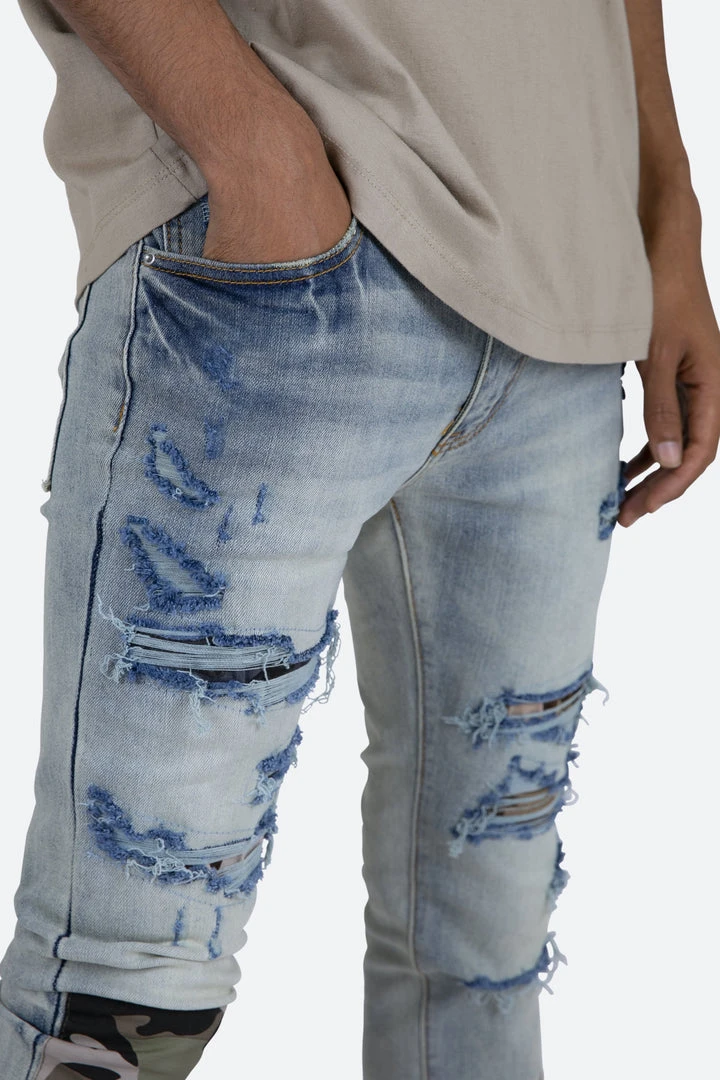 - Crafted from high-quality denim, the Mnml X408 jeans offer durability and comfort. The repaired and distressed design adds a unique touch to your wardrobe.